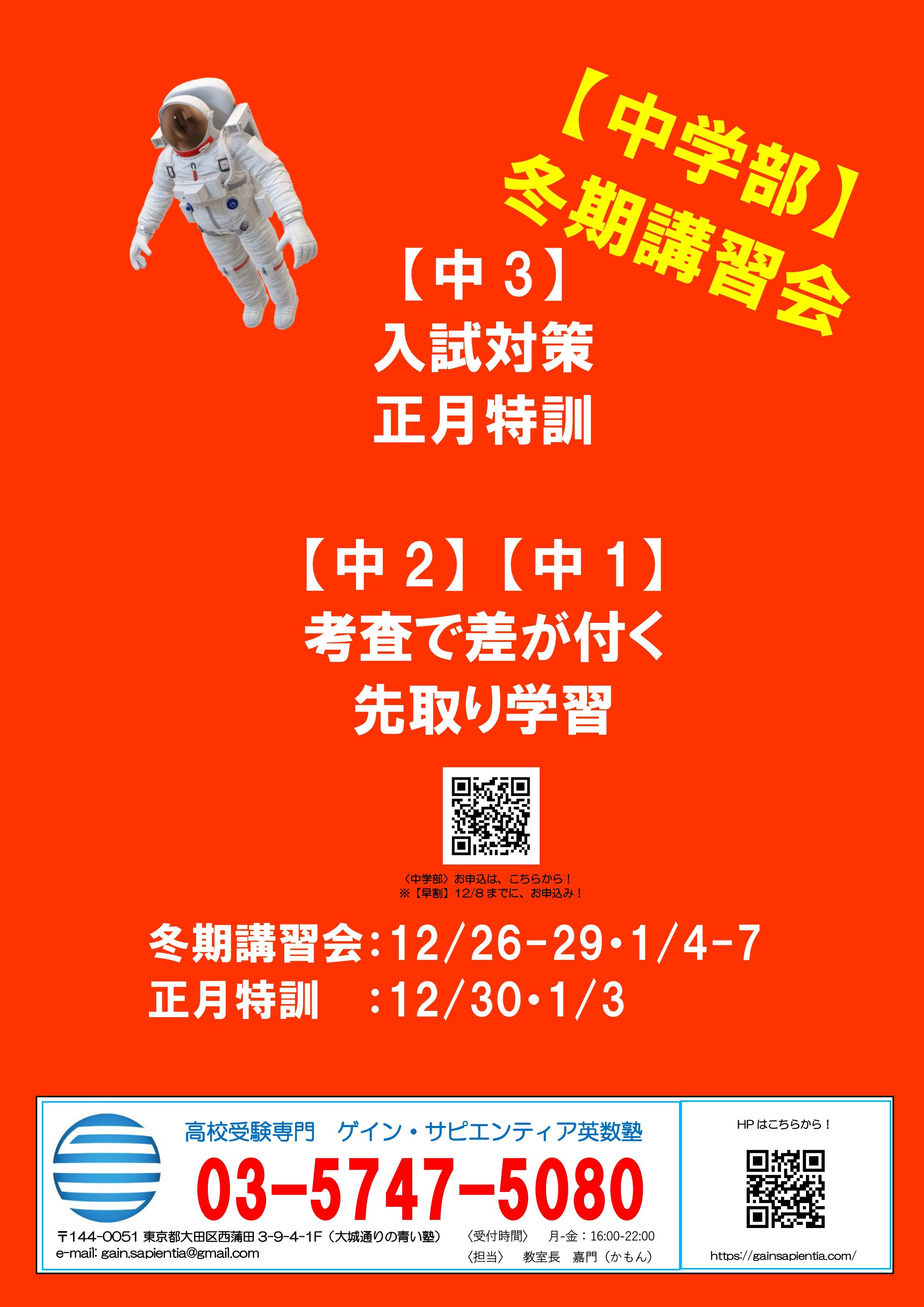 2025,09,15 | 【中学部】「少数指導:中3:特訓(3T)」は満席のため、募集は終了いたしました。また、他の小数指導も残席数がわずかとなります。お早めにお問い合わせください。 |